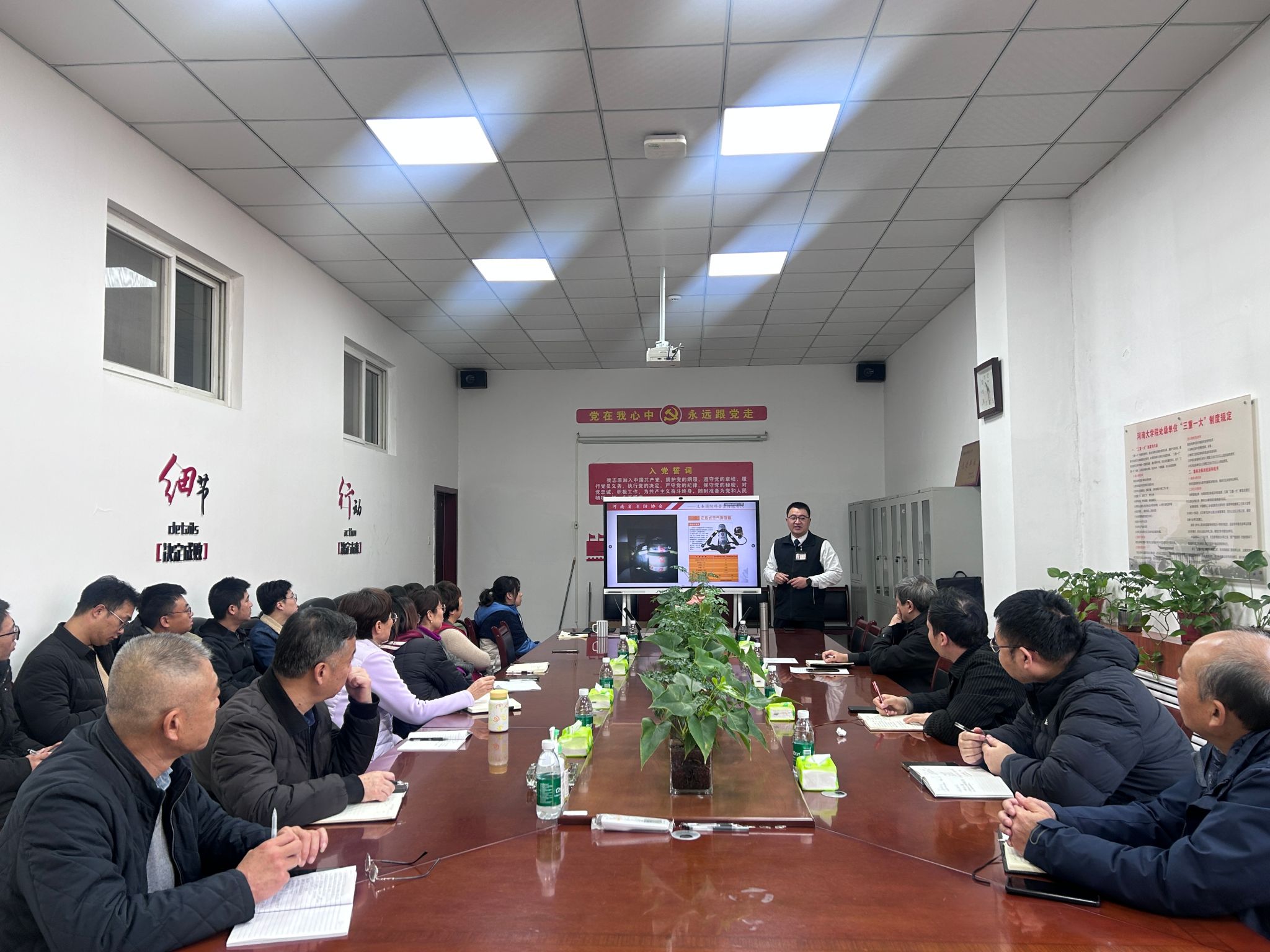 为进一步强化教职工消防安全意识,全面提升应急处置能力,筑牢全方位安全防护屏障,12月11日上午10时,基建处结合全校2025年下半年消防安全培训工作计划,开展了消防安全知识暨应急演练培训,特邀河南省消防协会义务消防科普宣传服务队李林峰教员现场授课。此次培训由基建处副处长王兴旺主持,基建处全体领导老师、劳务派遣人员及在建项目负责人、安全管理负责人参加。